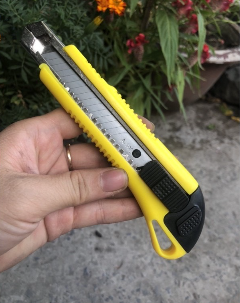 – Kéo hết lưỡi dao cũ ra khỏi thân dao.